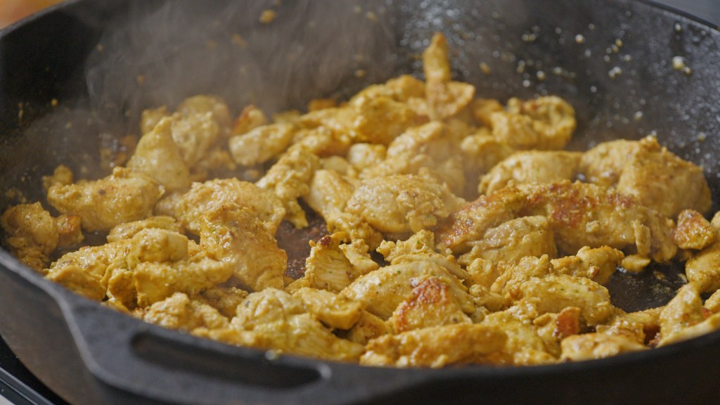 Brown for Flavor: Heat a cast iron pan over medium-high heat (no extra oil needed, thanks to the paste’s oil content). Sear the chicken in batches if needed, cooking until browned on all sides, about 5–7 minutes. This step adds depth and locks in juices. Set the chicken aside on a plate.